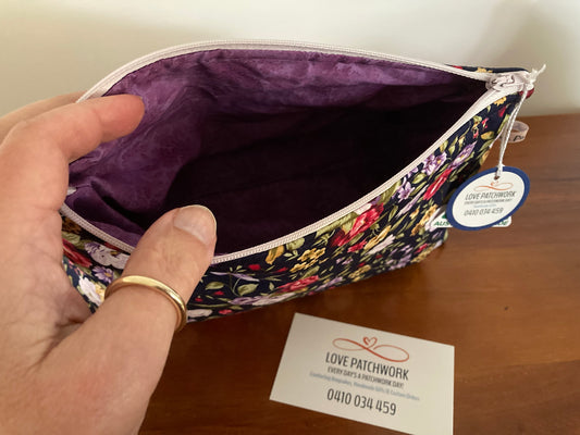 Handmade Cosmetic Pouch or Unique One of a Kind Zipper Bag for Any Purpose - Purple Floral