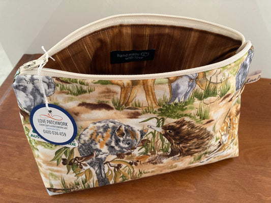 Handmade Cosmetic Pouch or Unique One of a Kind Zipper Bag for Any Purpose - Australian Animals
