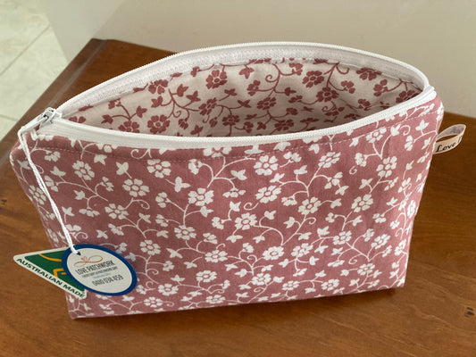 Handmade Cosmetic Pouch or Unique One of a Kind Zipper Bag for Any Purpose - Musk Pink & White Floral