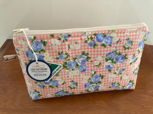 Handmade Cosmetic Pouch or Unique One of a Kind Zipper Bag for Any Purpose - Pink Gingham