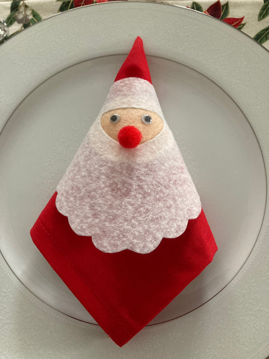 Santa's Serviette Ring Set with Reusable Cotton Serviettes (Set of 8)