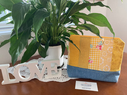 Handmade Cosmetic Pouch or Unique One of a Kind Zipper Bag for Any Purpose - Yellow & Denim