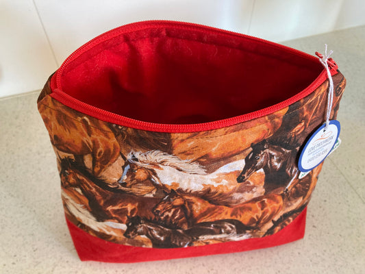 Handmade Cosmetic Pouch or Unique One of a Kind Zipper Bag for Any Purpose - Horses