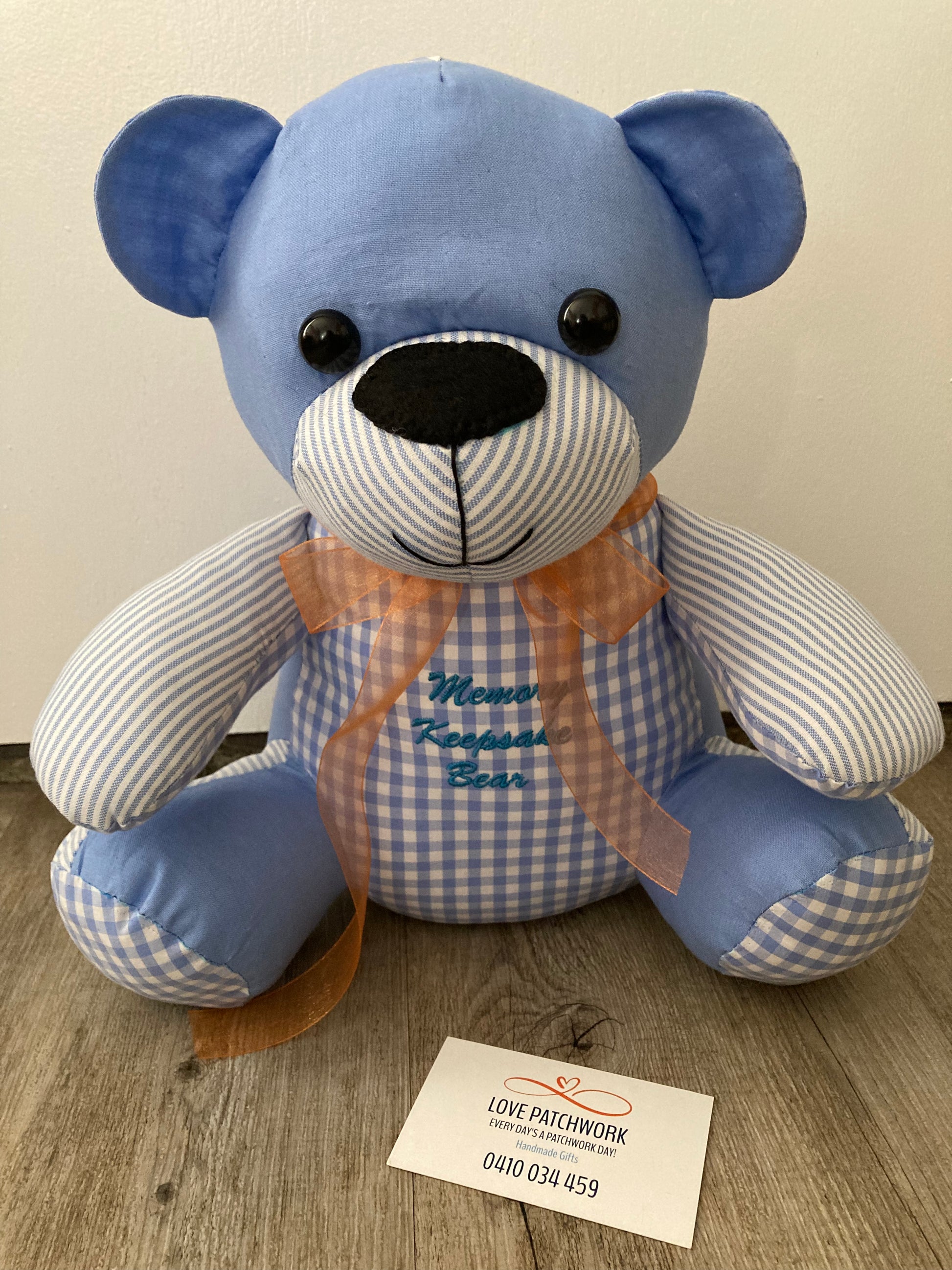 Crafted with love and care, our Comforting Keepsake Memory Bears provide a unique and personalised way to cherish your memories. Custom order your very own bear, crafted from your special fabric, and hold on to the little moments forever. A perfect keepsake for every occasion.