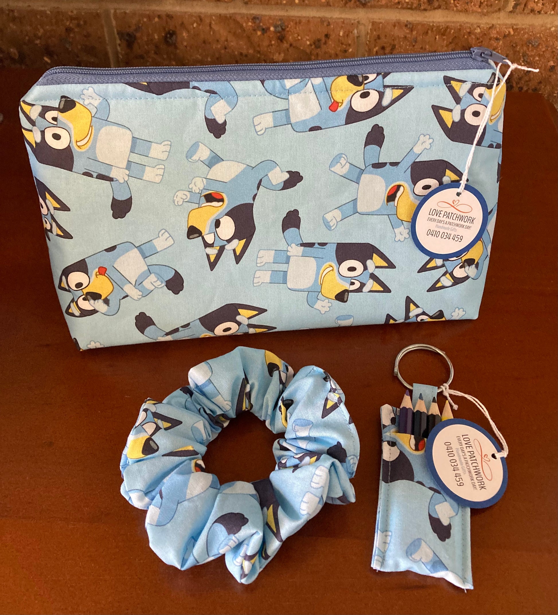 Gift Sets - Pouch, Hair Scrunchie & Keyring (Bluey design)