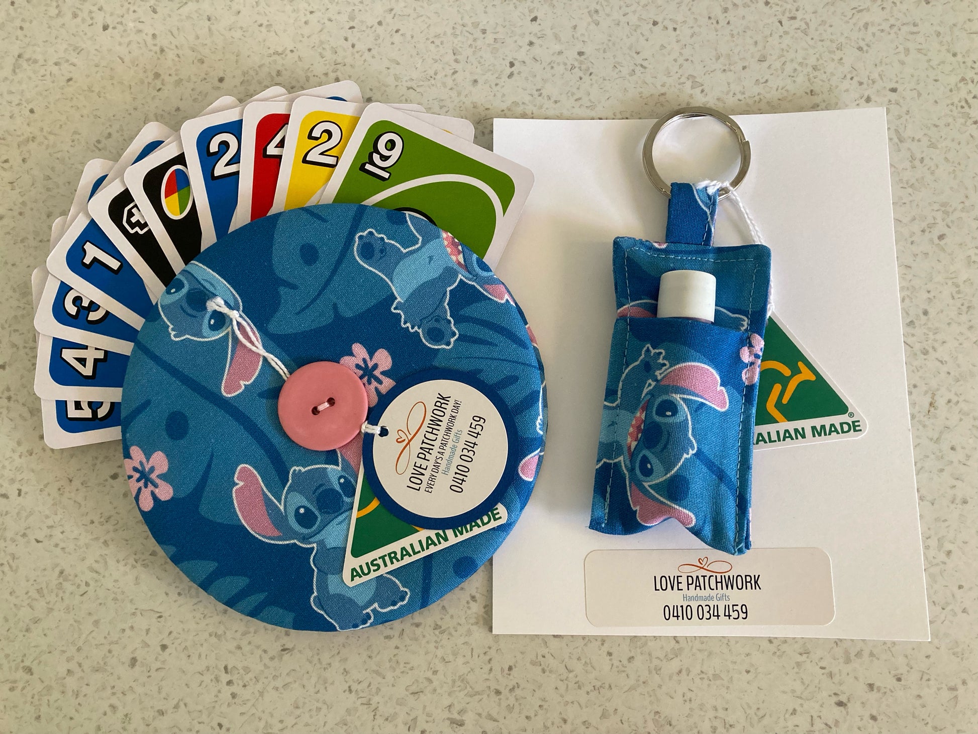 Gift Sets - Helping Hand Playing Card Holder & Lip Balm Keyring (Lilo & Stitch design)