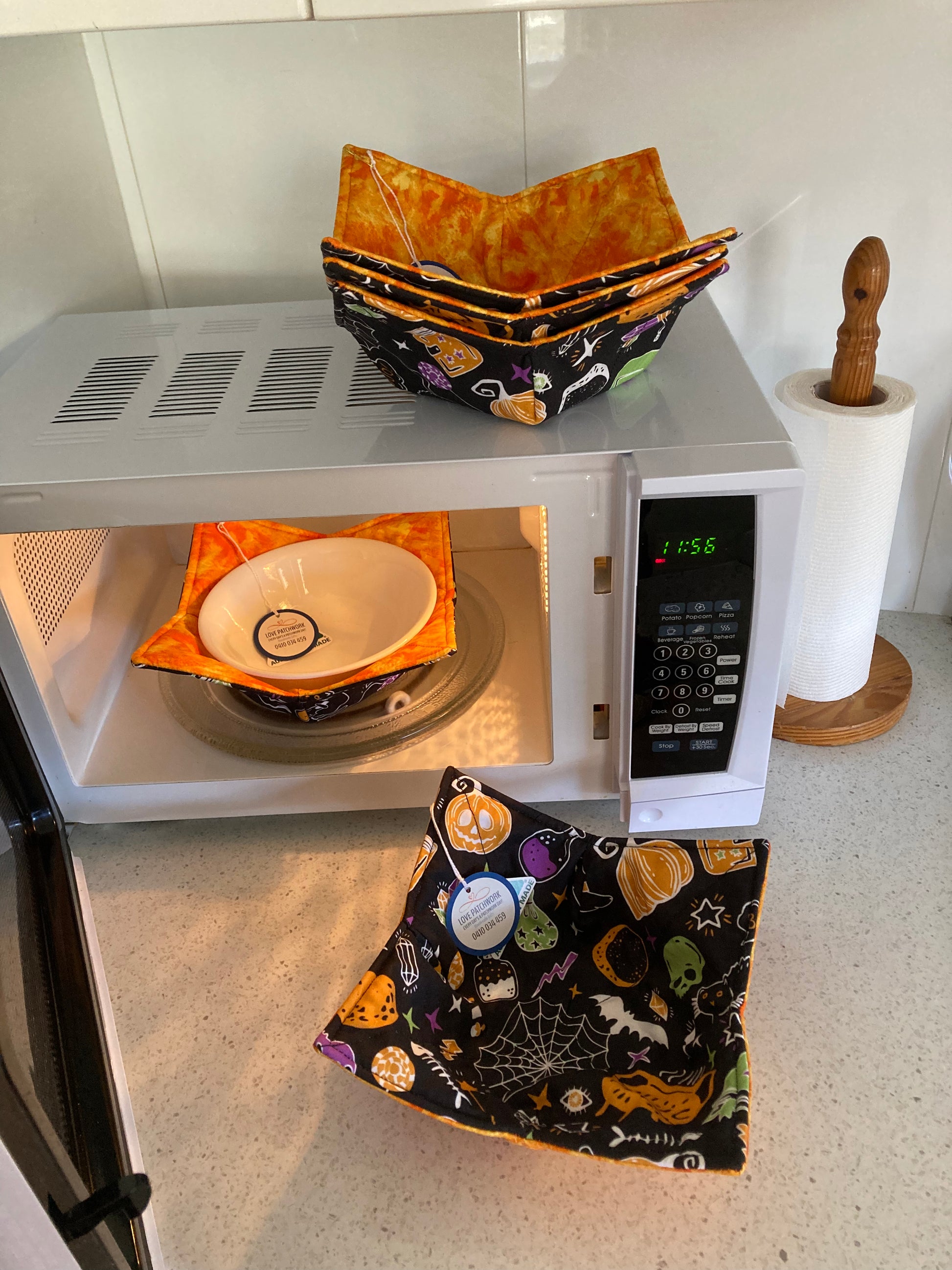 Keep your hands safe and your kitchen stylish with these microwave bowl holders! Lovingly sewn from 100% cotton, they cradle your bowl in the microwave and make it easy to remove hot dishes safely. Perfect for soups, noodles, or leftovers. Reversible, machine washable, and made with care in Australia.