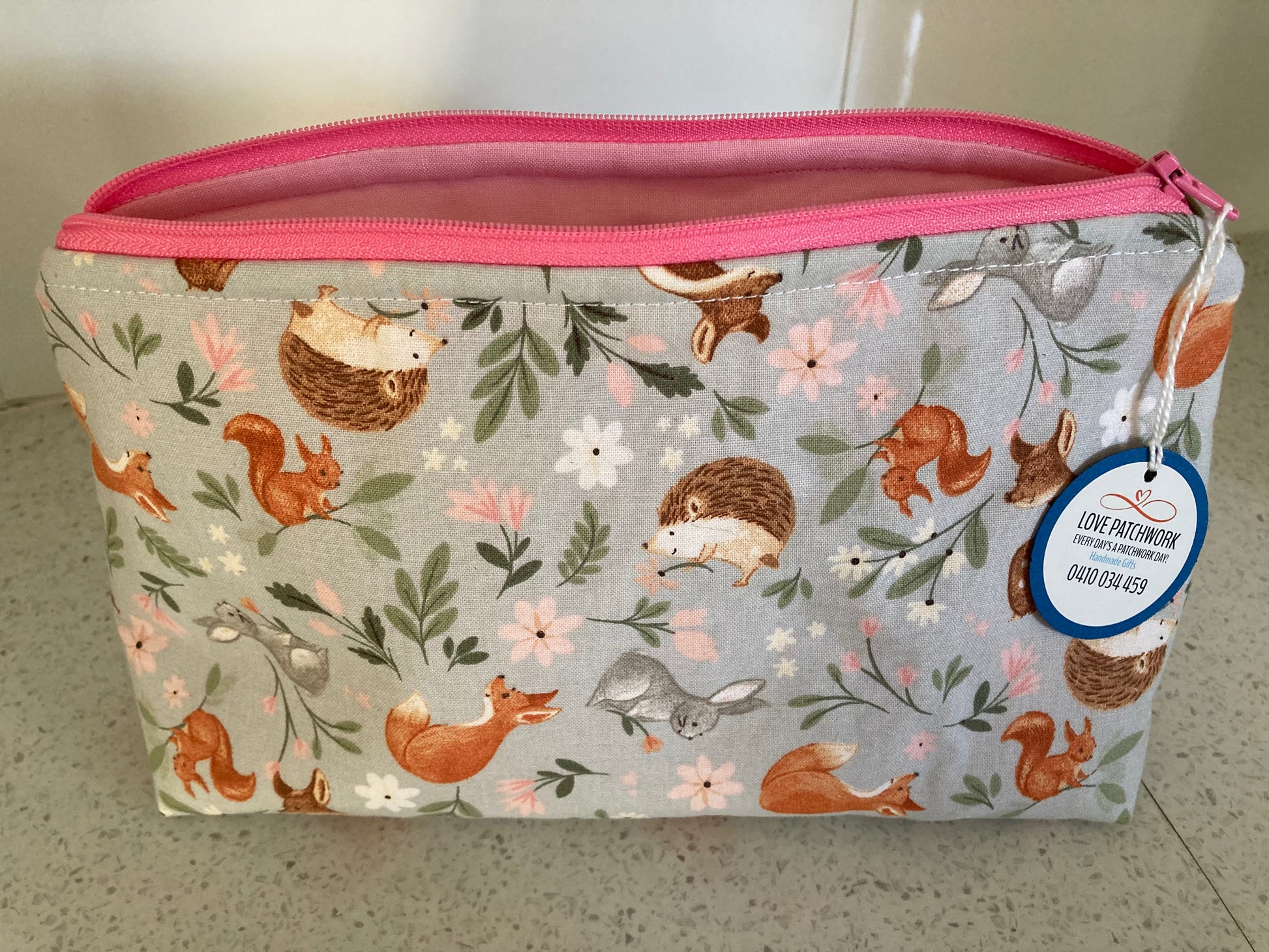 Handmade Cosmetic Pouch or Unique One of a Kind Zipper Bag for Any Purpose - Woodland